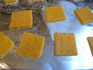 Cut dough into cracker sized pieces (they do not spread) and place on foil lined baking sheet.